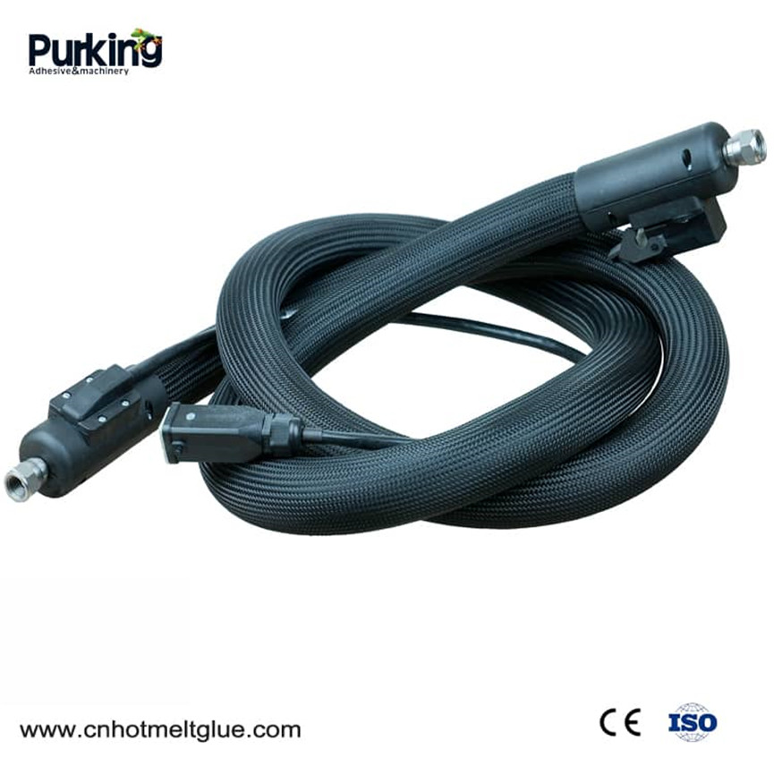 Notre chauffe-tuyau chauffant compatible standardts fil chauffant américain et fil résistant aux hautes températures, qui sont enroulés uniformément sur la paroi extérieure du tuyau, avec une bonne isolation, une conduction thermique uniforme et une résistance aux hautes températures, Il peut être réaménagé et appliqué à différentes marques de fondeur de colle thermofusible ou de fondeur PURbulk selon la demande de l'utilisateur.
